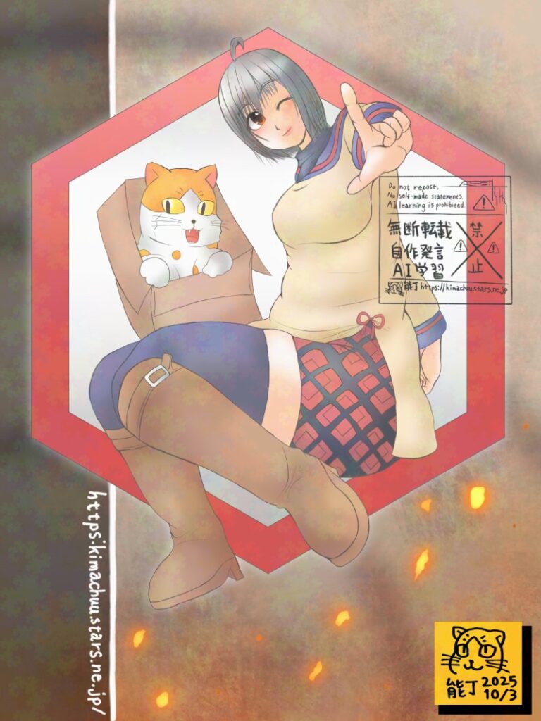 スカートの柄にクリスタ素材を使う方が楽なのではと思いつつ、何となく手描きで仕上げちゃうやつ。