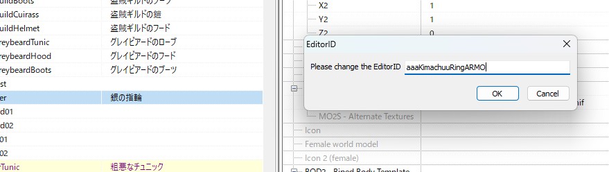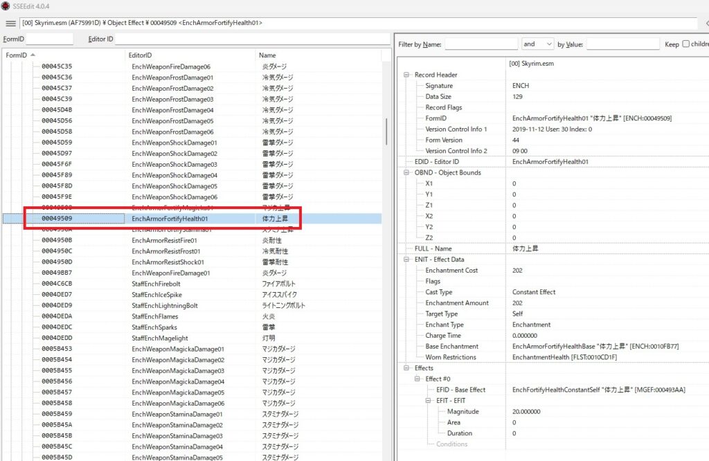 量が多いので、上のEditorIDを押してABC順で並べ替えするといいかもです。