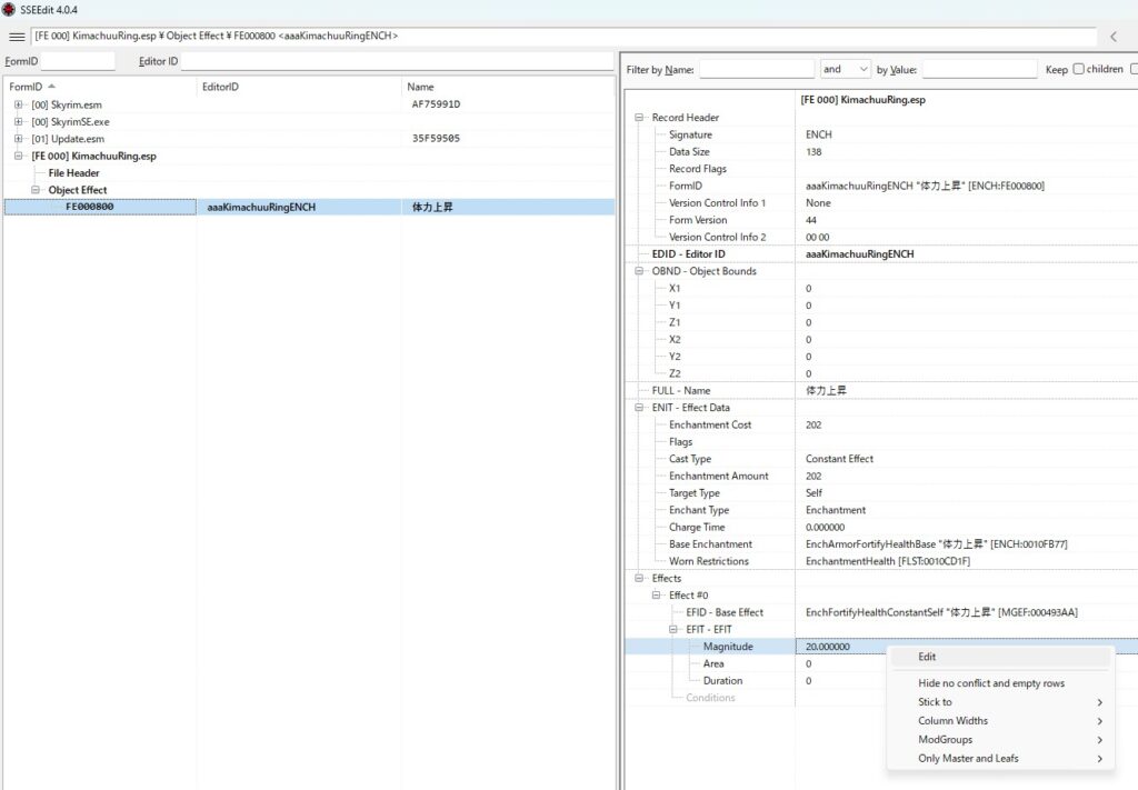 ・マグニチュード20と書かれた場所を右クリックして「Edit」