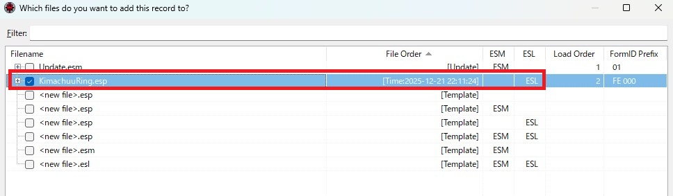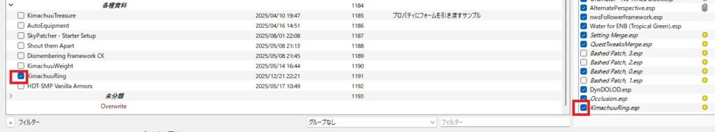 右側のロードオーダーにもチェックが入っていれば、あなたの指輪はゲーム内で使えます。