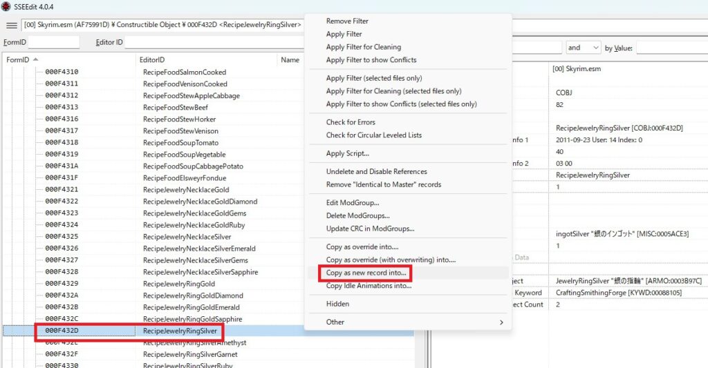 導入と運用のハードルが高過ぎるCreationKitではなく、SSEEditを使ったものとなります。