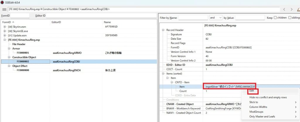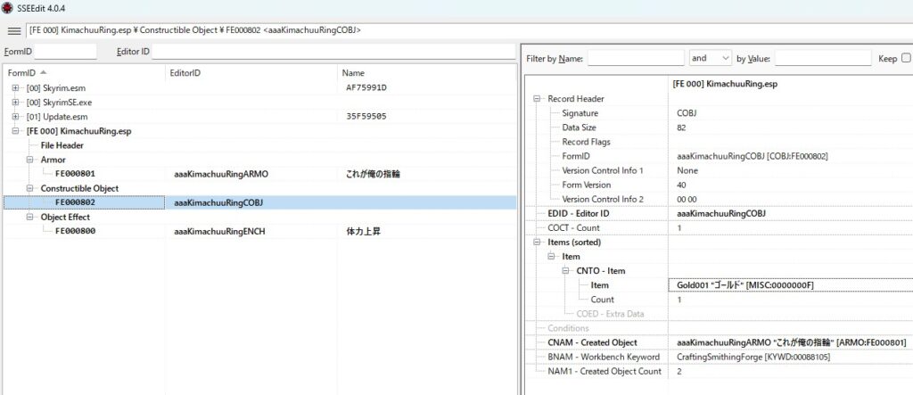 というわけでかなり長くなってしまいましたが、SSEEditを使った簡単なMOD作りの一例となります。